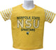 Claim your future with this Future Norfolk State Spartan bodysuit. Featuring Norfolk State in a signature print design, this bodysuit professes boldly your little one's future HBCU. Pride starts early. 100% premium cotton and available in sizes 3M-18M.
